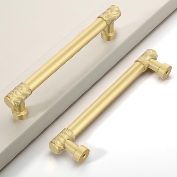 Coinkoly 10 Pack 5"(128mm) Brushed Gold Cabinet Pulls Knurled Kitchen Cabinet Handles Drawer Pulls Cupboard Hardware for Cabinets