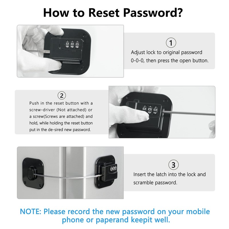 - Easy Combination Setup and Installation: Set your unique combination effortlessly, no keys required. Ensure easy access for yourself while keeping others out.Simply stick the lock plates, not require drilling or screws