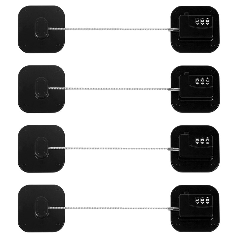 Coipdfty Refrigerator Lock, Heavy Duty Fridge Lock, Combination Lock for Refrigerator Cabinets, Drawers, Safety Lock, Easy Install No Keys Needed (Black-4Pack)
