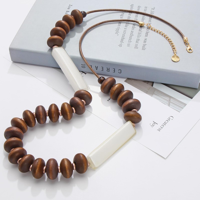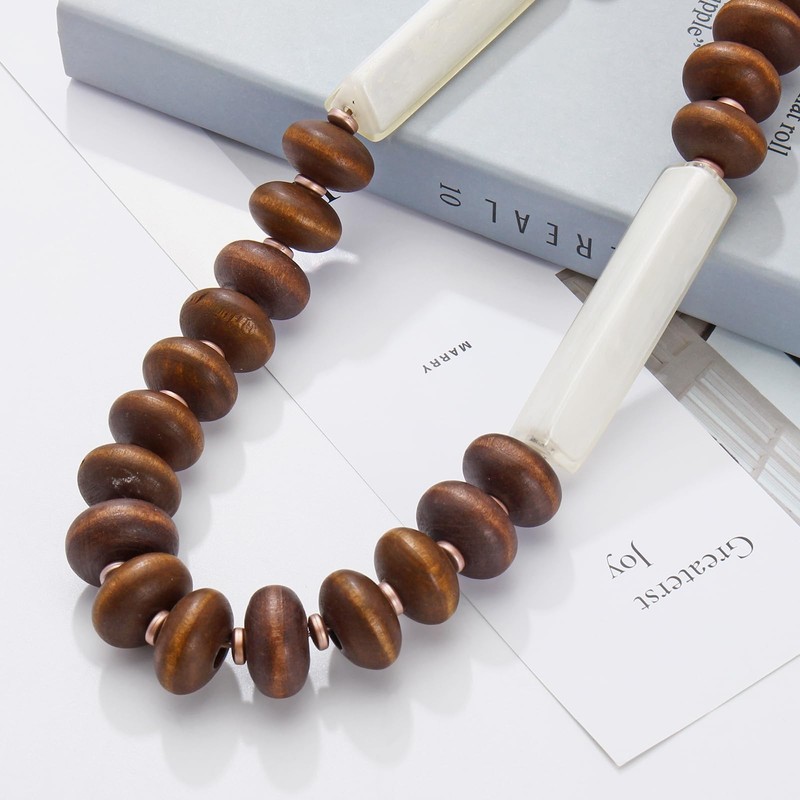 Coiris Layer Chunky Wood Beaded Necklace Exaggerated Statement Bead Collar Necklace Bib Necklaces (N0122)