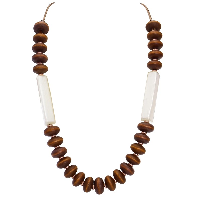 "Add a touch of boho-chic to your jewelry collection with our 3 Layer Wooden Beaded Statement Necklace. This handmade necklace features a stunning design with three layers of wooden beads, creating a unique and eye-catching look. The long necklace length allows it to drape elegantly around your neck, adding a touch of sophistication to any outfit. Each bead on this necklace is meticulously handcrafted, showcasing the dedication and skill of our artisans. The natural wooden beads provide an earthy and organic feel, while the layered design adds depth and dimension. Whether you're dressing up for a casual day out or attending a special event, this necklace effortlessly adds a statement-making touch to your ensemble. Embrace your bohemian side with this versatile accessory. Its boho-chic style allows it to be paired with a wide range of outfits, from flowy maxi dresses to jeans and a simple blouse. The neutral tones of the wooden beads make it easy to mix and match with different colors and styles. Upgrade your jewelry collection with our 3 Layer Wooden Beaded Statement Necklace. It's the perfect blend of boho charm and statement-making style, making it a must-have accessory for any fashion-forward individual."