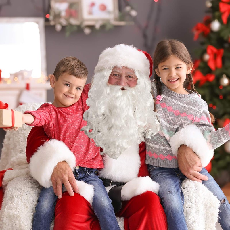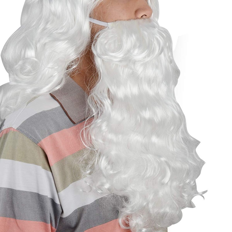 CoiTek Santa Beard and Wig Set, White Santa Claus Wig and Beard, One-Size Fit Most Adult for Christmas Party Dressing Decoration