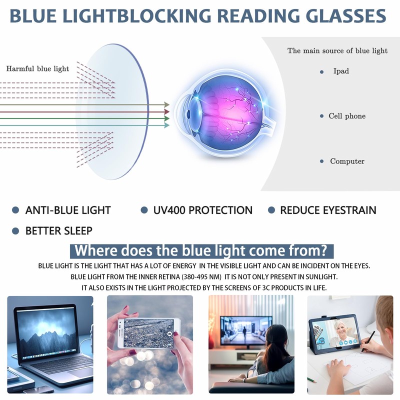 - UNIQUE DESIGN - Progressive Anti-Blue Light Reading/Working Glasses with square lenses and fashionable color not only help to read, but also slim your face - the world is clearer because of it