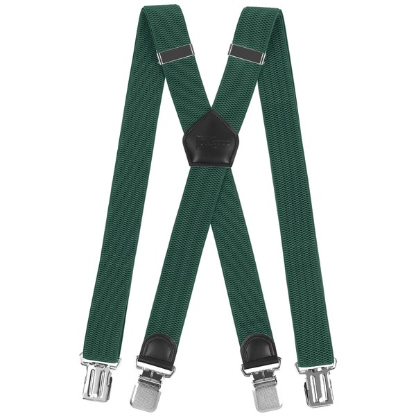 Cokaca Men's Braces Extra Strong with Very Strong 4 Metal Clips, Wide Long X Shape, Elastic and Adjustable Length, Very Suitable for Large or Heavy People, X-shape: dark green