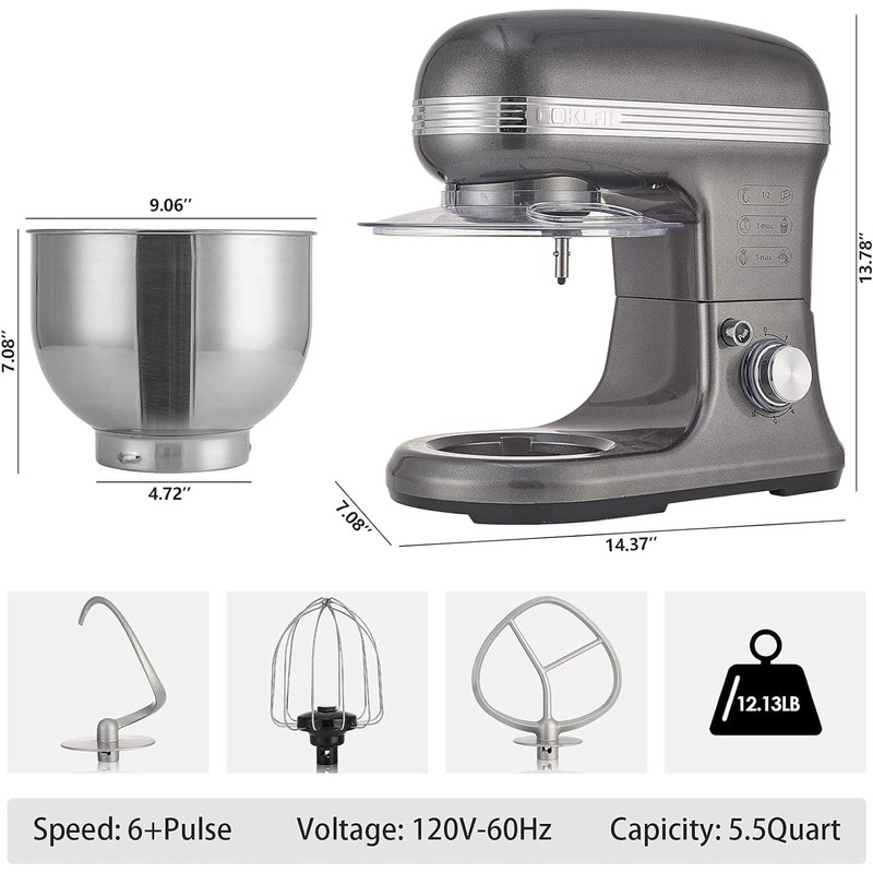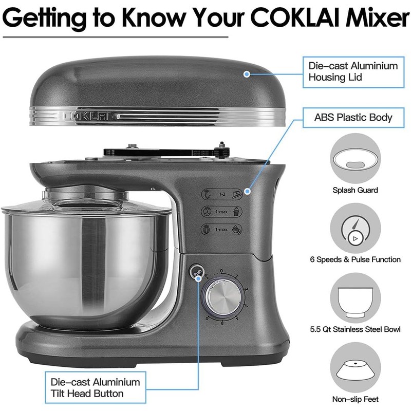 COKLAI Stand Mixer, Electric Mixer, 6 Speed Dough Mixer Metal Lid with Stainl...