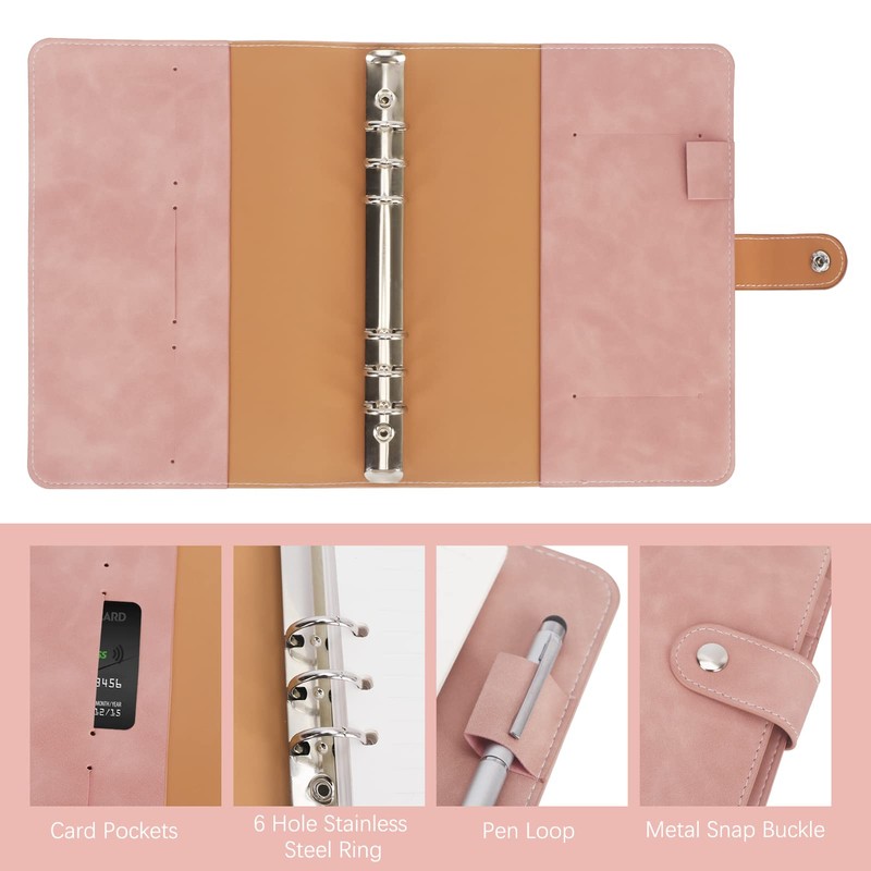 - ❤【Wide Use】The A5 binder with pockets inside can organize your cards, tickets, cash and so on. The pen holder can keep your pen in place.Whether you are in office or school, this binder will become your good assistant.Perfect for a budget planner, exercise book, office notebook,school notebook, travel diary, sketchbook and planner, etc.Also for someone who loves writing, reading, journalists and travelers alike.