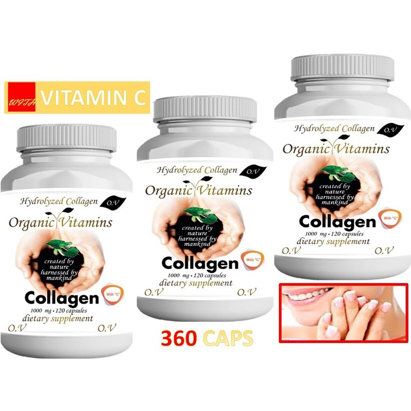 Colageno 3 Hydrolized Collagen + Vitamin C 360 CAPS ,hydrolyzed