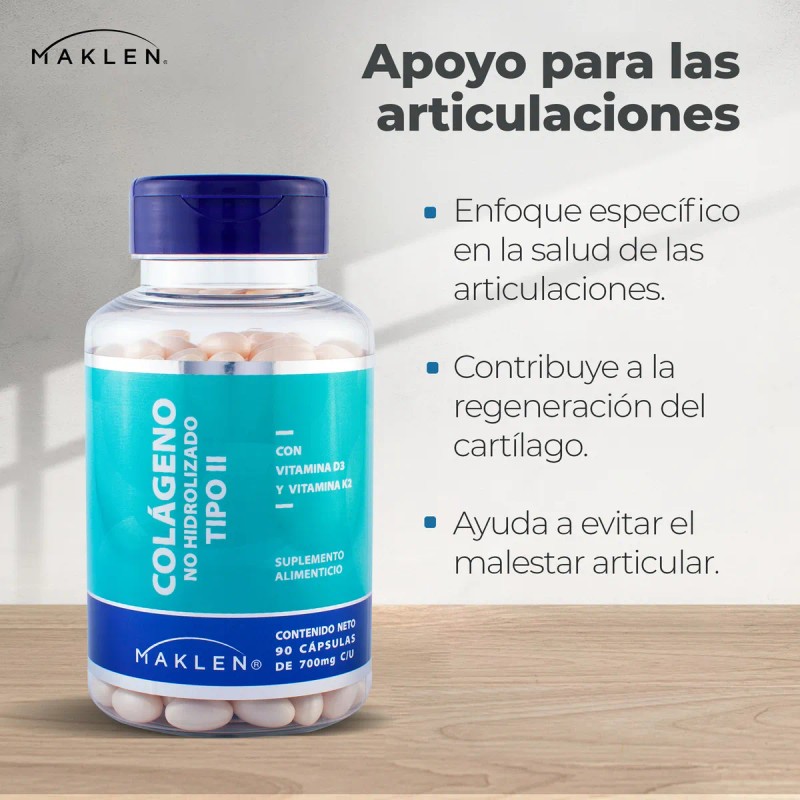 ¡Brinda a tus articulaciones y huesos el soporte avanzado que necesitan con Maklen Colágeno Tipo II UC-II + D3 y K2! ¡Mantente activo y disfruta de una vida plena! 🌟💪