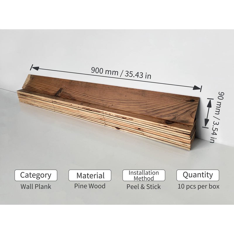 - 【Special Design】100% Reclaimed pine wooded wall planks with strong self-adhesive back tape strips. Natural timber color with wire-drawing texture shows a simple but personalized style. By using natural wood, its natural vein and texture give slight color and shade variation, each board has its own unique character that cannot be replicated. Make to change your living space from ordinary to extraordinary