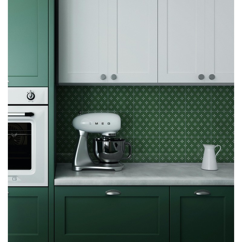 COLAMO Luxury 10-Sheet Glossy Green Peel and Stick Backsplash,Adhesive Faux Ceramic Tile for Kitchen,White Floral Modern Design Self Stick on Accent Wall for Bathroom,Living Room(Waterproof,8”×8”)
