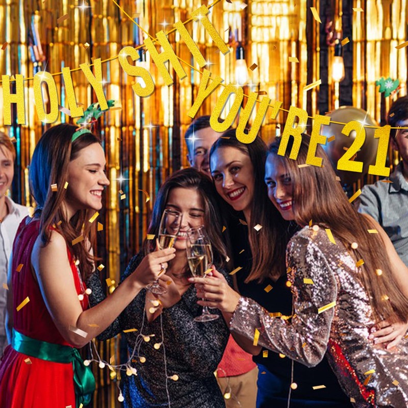 COLANANA Happy 21th Birthday Banner,21th Birthday Banners,Gold Glitter Banner Birthday Party Decor,Gold Sign Funny Party Supplies You're 21 Birthday Banner Decorations for Women Men