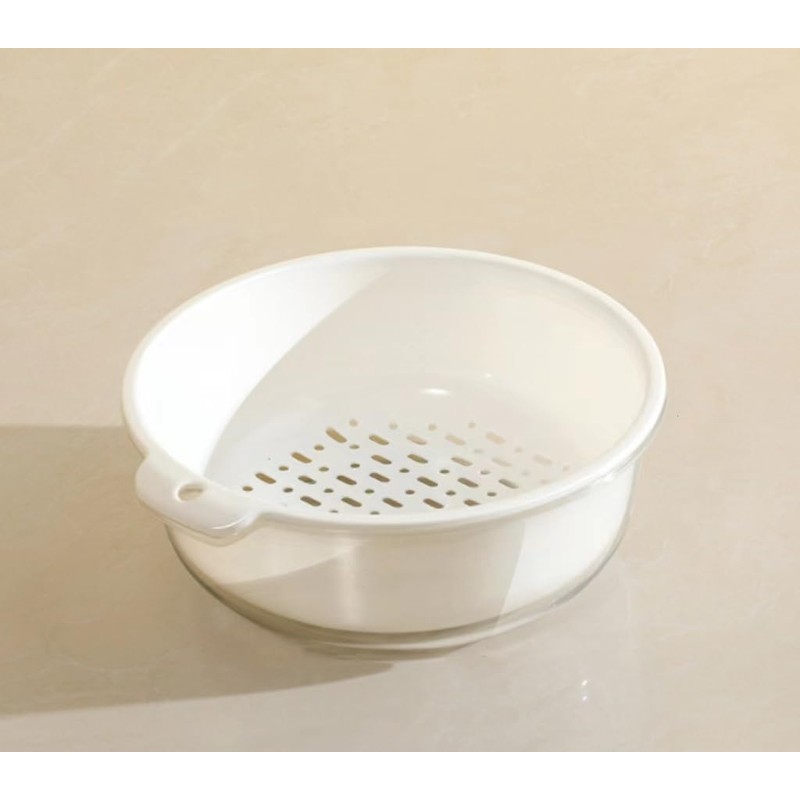 Colander Strainer with Washing Bowl, 2-in-1 Plastic Kitchen Strainer/Colander & Bowl Sets for Fruit and Vegetable Wash, Drain (Medium white)
