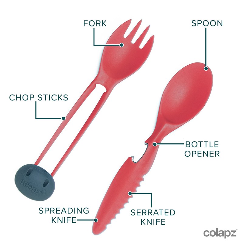 - AS SEEN ON KICKSTARTER - Colapz is proud to be one of the most successful camping accessories product on kickstarter for the 7 in 1 travel cutlery set! The product is already travelling and exploring with thousands of travel enthusiasts across the world.