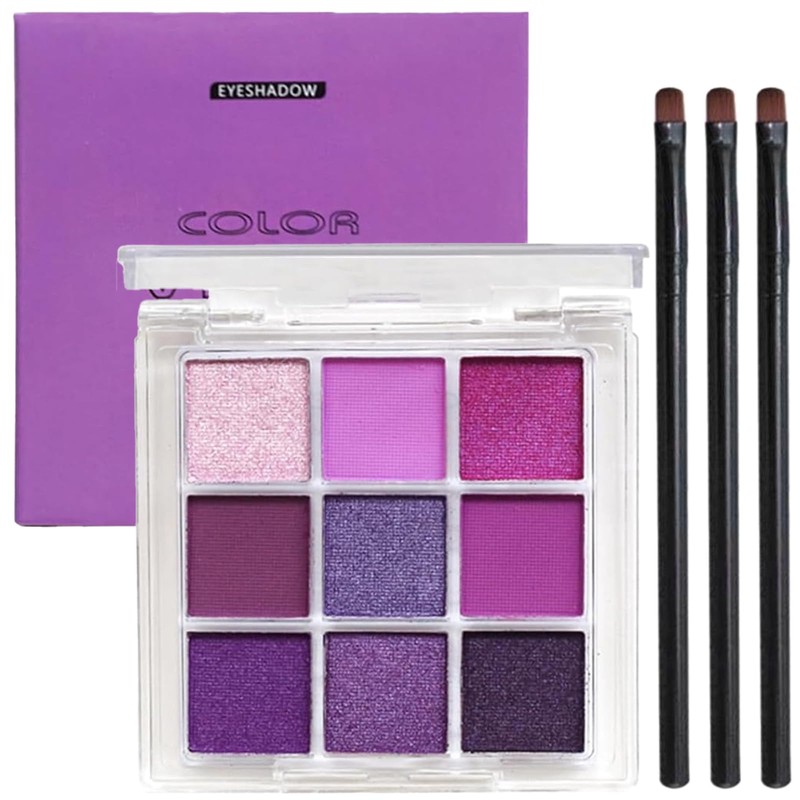 Colaren Purple Eyeshadow Palette, 9 Colors Glitter Eyeshadow with 3 Eye Makeup Brush for Girls Women