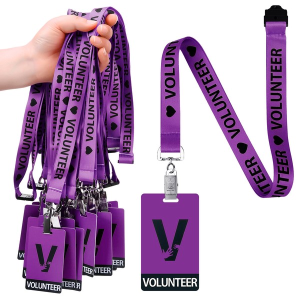 Colarr 25 Pack Volunteer Lanyard with PVC Plastic Card Pass Volunteer Badges ID Breakaway Lanyard for Events Fundraising Church, Events, School Volunteer (Purple)