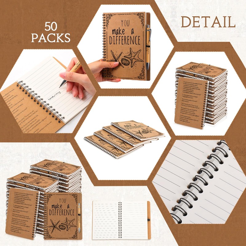 - Inspirational Designs: the spiral notebooks are printed with a starfish story on the back cover, the motivational pens are printed with the words [Never forget the difference you've made], which can easily remind the recipient to stay active and help them build a positive attitude towards life