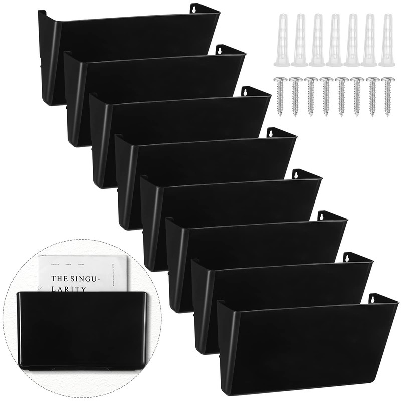 Colarr 8 Pcs Plastic Single Pocket Wall Mount File Holder Wall Folder Holder Wall Pocket Mailbox Hanging File Organizer with Screws Wall File Magazine Organizer for Office Home(Black)
