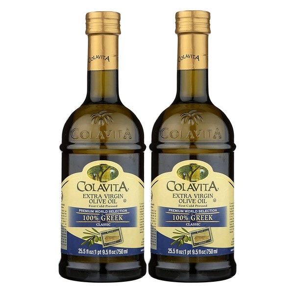 - Contains 2 (two) - 25.5 oz glass bottles of Colavita Greek Extra Virgin Olive Oil.