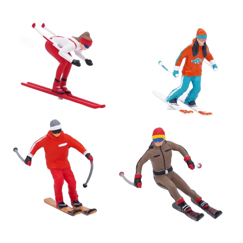 • 【1:64 Scale Figures】: Miniature Nordic Skiing figurine, Four people holding ski poles, showing different skiing postures, collection for people who like skiing