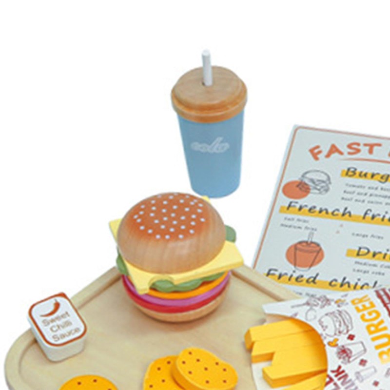 - 【Kitchen Toy Set 】: Pretend Play Food Set includes tray, burger, fries, drumstick, sauce, ketchup and drinks