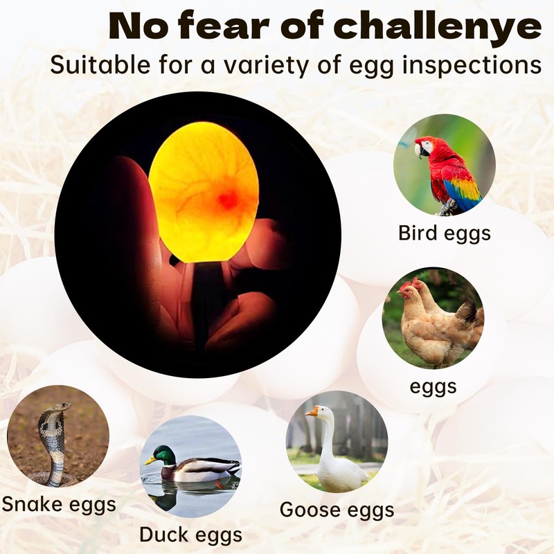 - ăSuitable for several different sizes of eggsăSuitable for almost all types of eggs, parrot eggs, duck eggs, chicken eggs, ostrich eggs, snake eggs are all perfect for hatching observation use, the cold light will not harm the eggs