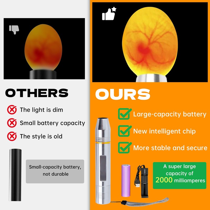 - đ„fertilized egg light; ideal for chicken base hatcheries to observe whether the eggs are healthy or not, also suitable for children and students to learn the whole process of egg hatching experiments eggs into chicks