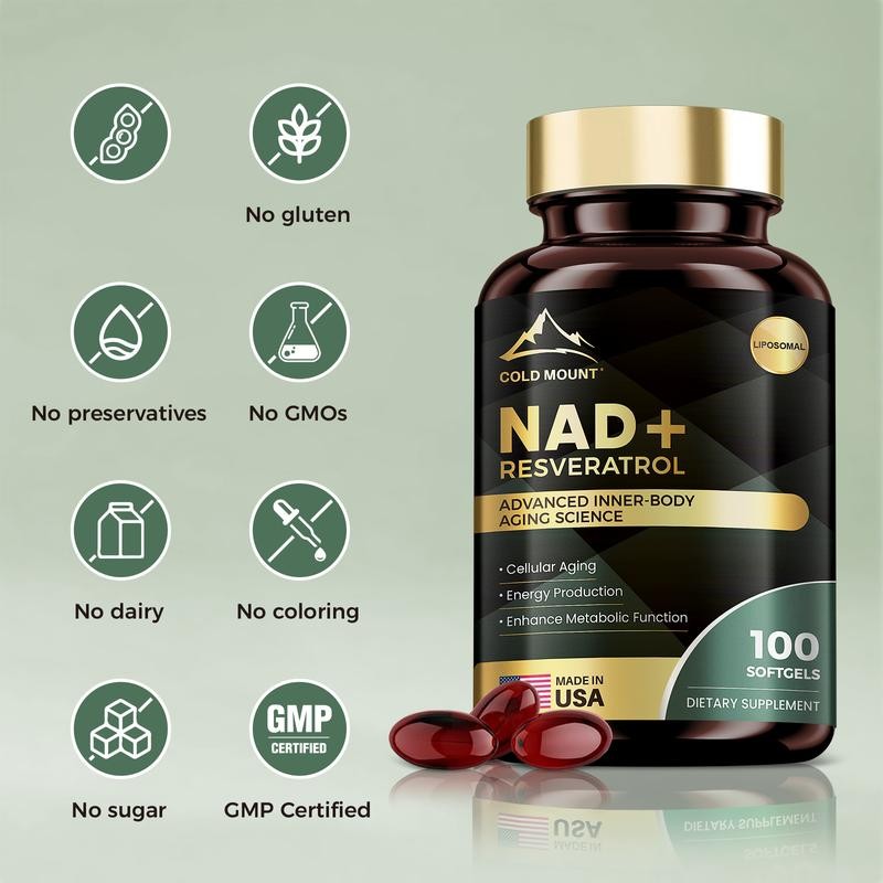 COLD MOUNT NAD+ Resveratrol - Anti-Aging & Energy Support with Liposomal Formula | 100 Softgels-MADE IN USA - Specification: Full Effect- Three-Bottle Course