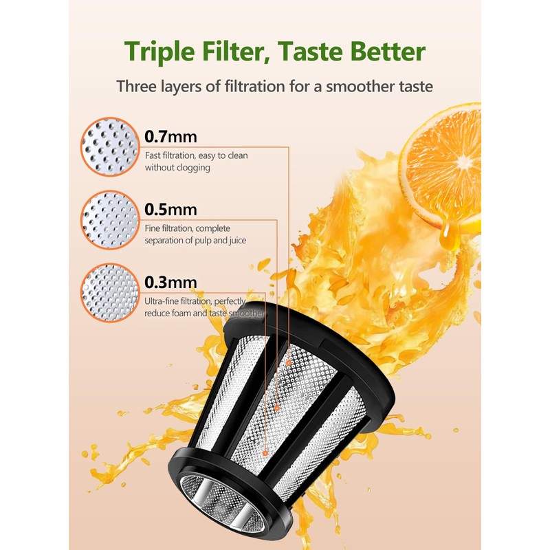 - đăStart A Healthier LifeăUpdated in 2025, this juice extractor comes with advanced 7-segment auger masticating system and better filter, extracting maximum juice from vegetables and fruits in 7 steps- cut, break, squeeze, mill, seperate, grind and extract. Every drop is pure and delicious. Forget bottled juices that are super high in sugar and additives, Get healthy, enzyme rich, fresh juice, boost your immunity, keep away from diseases. Bring health and wellness home with this juicer.