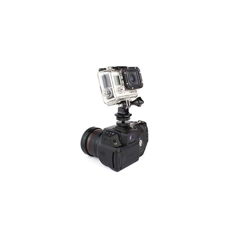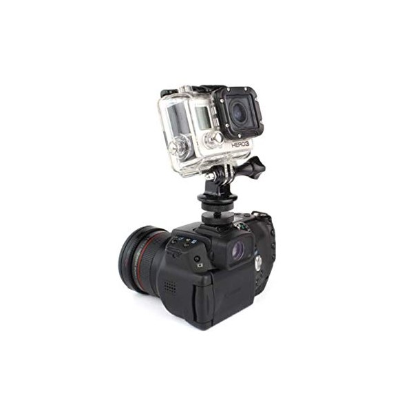 The Cold Shoe Adapter for GoPro has 1/4"-20 Male Post Adapter features a 1/4"-20 threaded stud on one end and a cold shoe (male) on the other. The adapter allows you to mount your GoPro onto a Camera. For added security, the knurled locking ring assures a tight connection to the accessory.