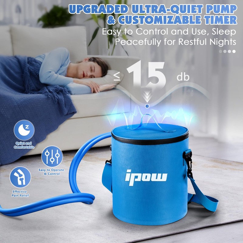 - 【Quiet and Comfortable】This ice machine for knee after surgery features a low-noise brushless motor, ensuring minimal disruption, and enabling you to rest peacefully. This large capacity collapsible bucket not only provide much space to use, it features superior insulation and can provide hours of continuous cold therapy with less frozen water bottles.