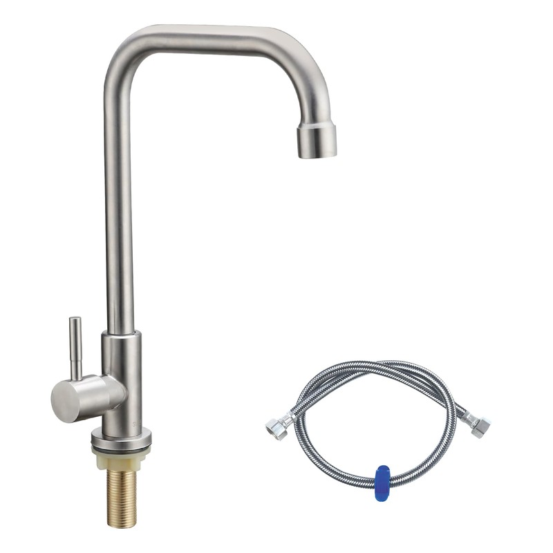 - 【All Metal Construction】This Lead-free single cold water faucet uses food grade SUS304 stainless steel to make, copper threaded rod, anti-corrosion & rust. Brushed nickel finish will not fade permanently. Maximum Flow Rate:1.8 Gpm 6.8L/Min