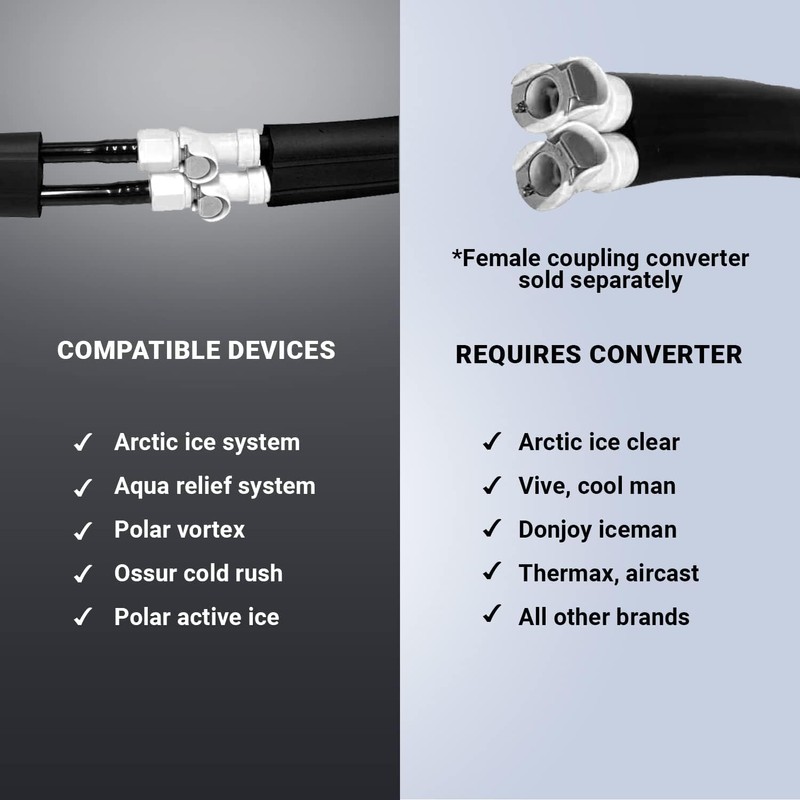 - Easy Installation: Simple to set up and integrate with your existing Water Therapy Ice Machine system. This set includes essential couplings and tubing for seamless connection to your Water Therapy Ice Machine