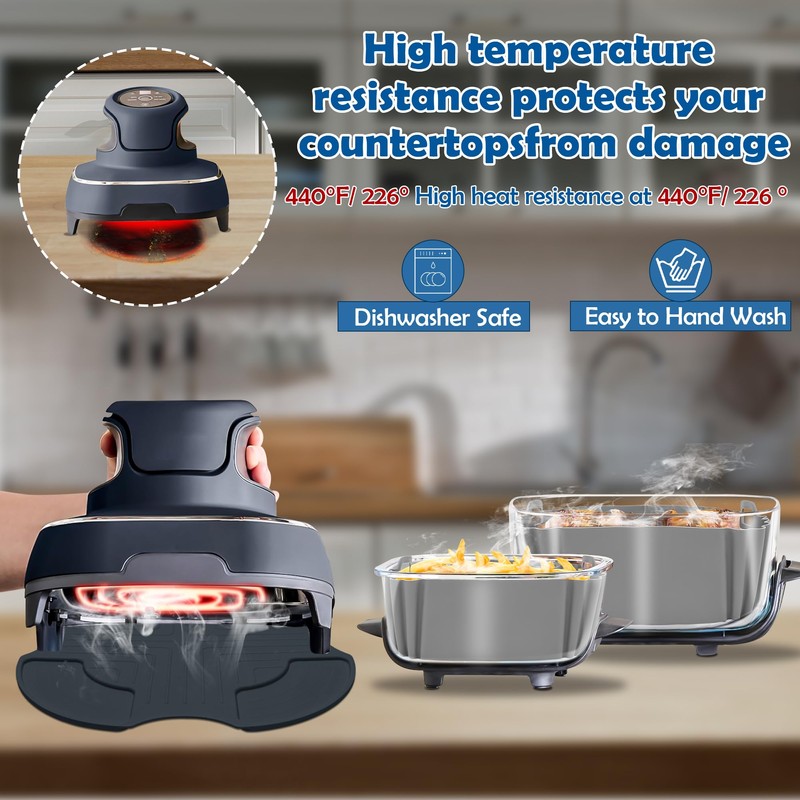 - Excellent heat insulation performance: Air fryer silicone trivets mat provides excellent heat insulation to prevent sliding and shifting while protecting your countertop from heat damage. It blocks heat generated by the air fryer lid during use, so you don’t have to worry about burning your countertop.