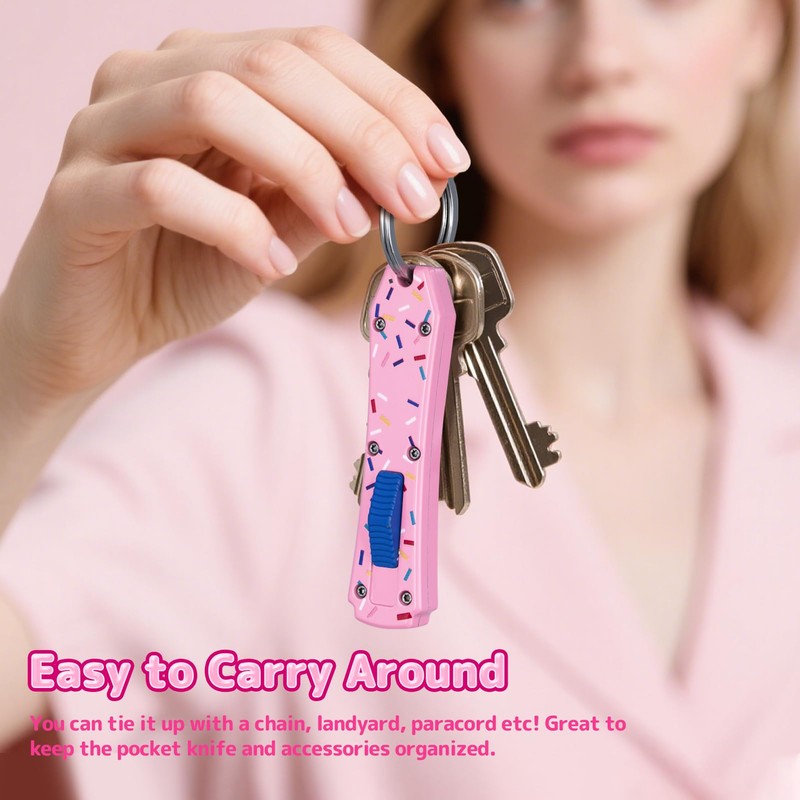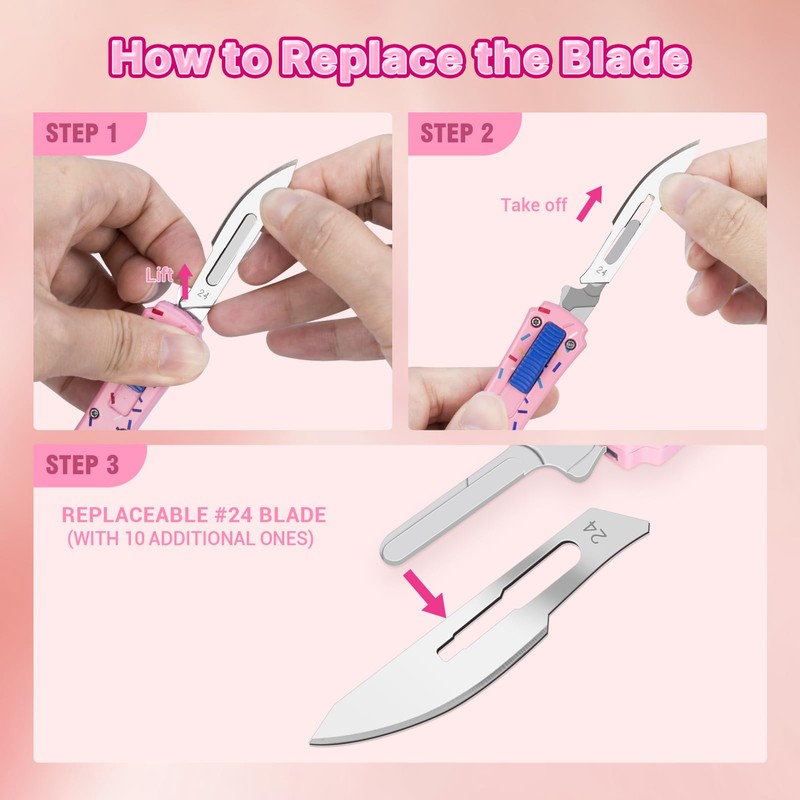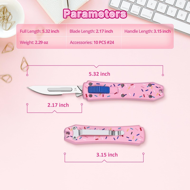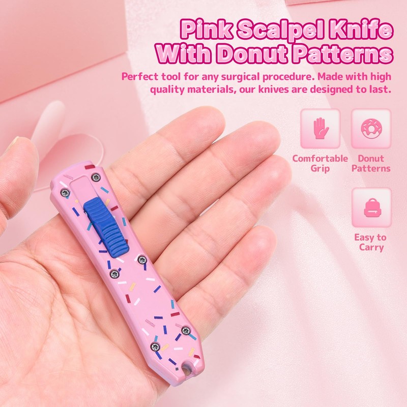 coldown Pink Retractable Utility Knife, EDC Box Cutter Retractable, Small Scalpel Knife with Clip, 10pcs Sharp Replacement Razor Blades #24, Pocket Work Knives for Men Women (Donut)