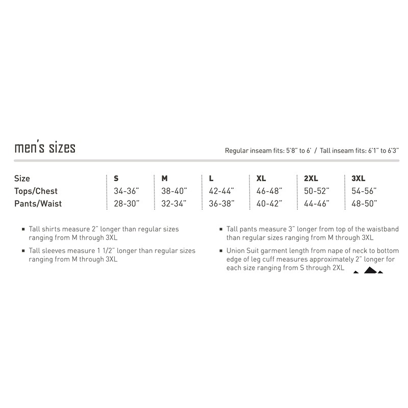 - Efficient Design: This men's long underwear top has convenient stay-put cuffs and a drop tail that maintains coverage and freedom of motion when worn during various activities