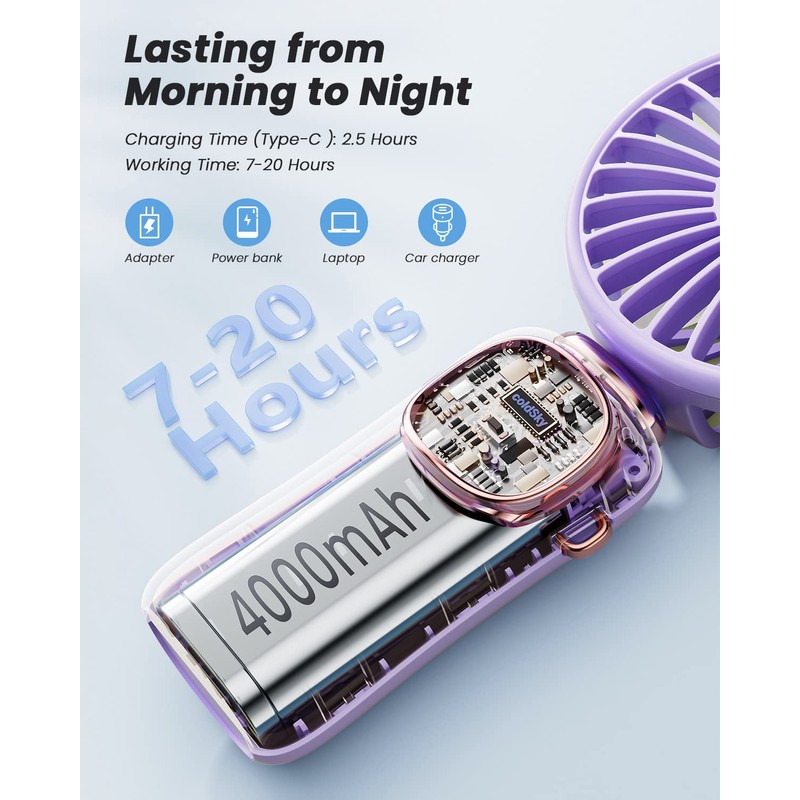 - 【𝟮𝟬𝗛𝗿𝘀 𝗠𝗮𝘅 𝗖𝗼𝗼𝗹𝗶𝗻𝗴 𝗧𝗶𝗺𝗲】ColdSky battery operated fan built-in 4000mAh battery and Power-saving technology. Offers long-lasting battery life and energy efficiency. Our outdoor fans can run continuously for more than 7-20 hours, You can enjoy a cool and comfortable day without worrying about running out of power. Perfect mini portable fan for travel, makeup, lash, camping, outdoor, indoor, etc