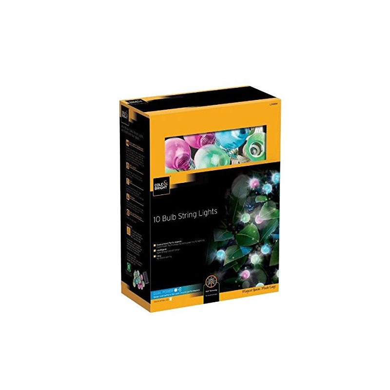 Cole & Bright L24304 Solar 10 Colour Bulb String Lights