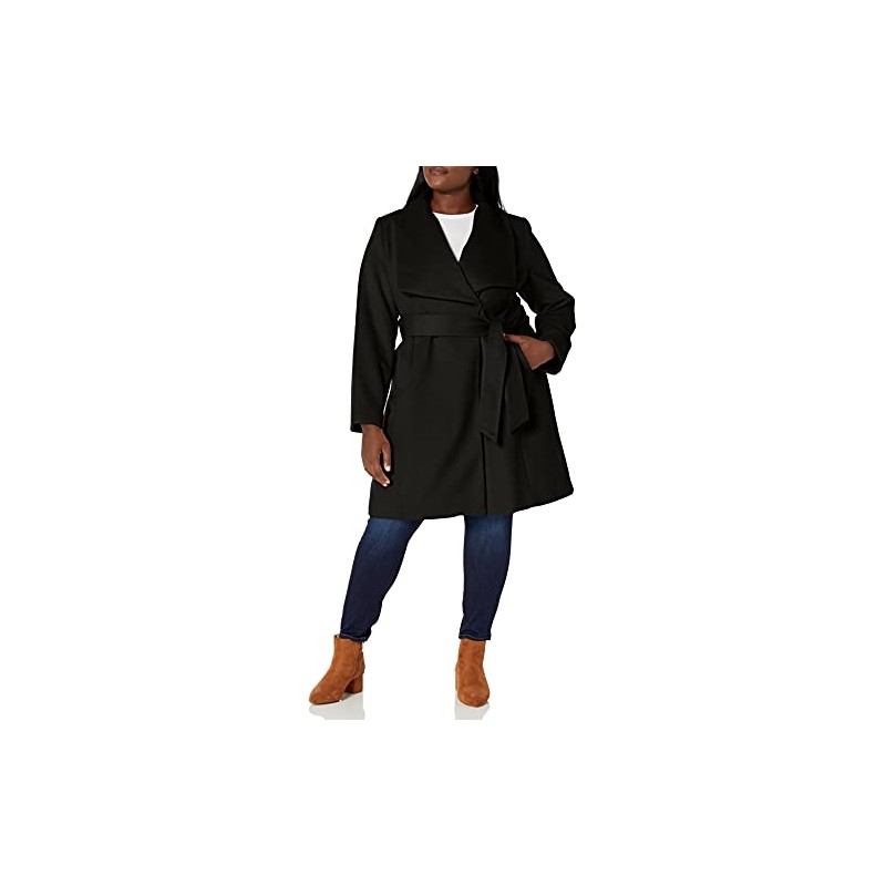 Cole Haan Women's Wool Classically Elegant Coat for Year-Round Style, Belted Black, 2