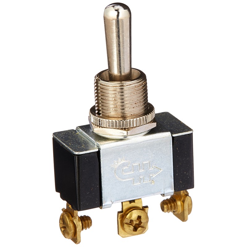 Cole Hersee Part #55021 Toggle Switch Momentary Heavy-Duty Single Pole Toggle Switch 12-36V DC (25A at 12V) Standard 11/16" handle. Silver contacts. On in parenthesis (On) indicates a momentary position. Attributes: Positions = (On)/Off/(On) Switch = SPDT Package = Bulk Terminals = 3 Screw Package Quantity = 1