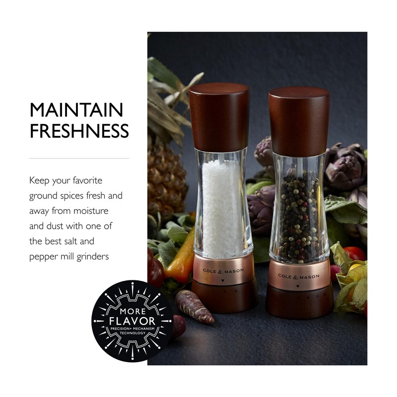 Cole & Mason Derwent Salt & Pepper Mill Gift Set - Salt & Pepper Shaker & Grinder with Adjustable Coarseness - Gourmet Precision Mill Set - Stainless Steel & Acrylic Grinders - Rose Gold