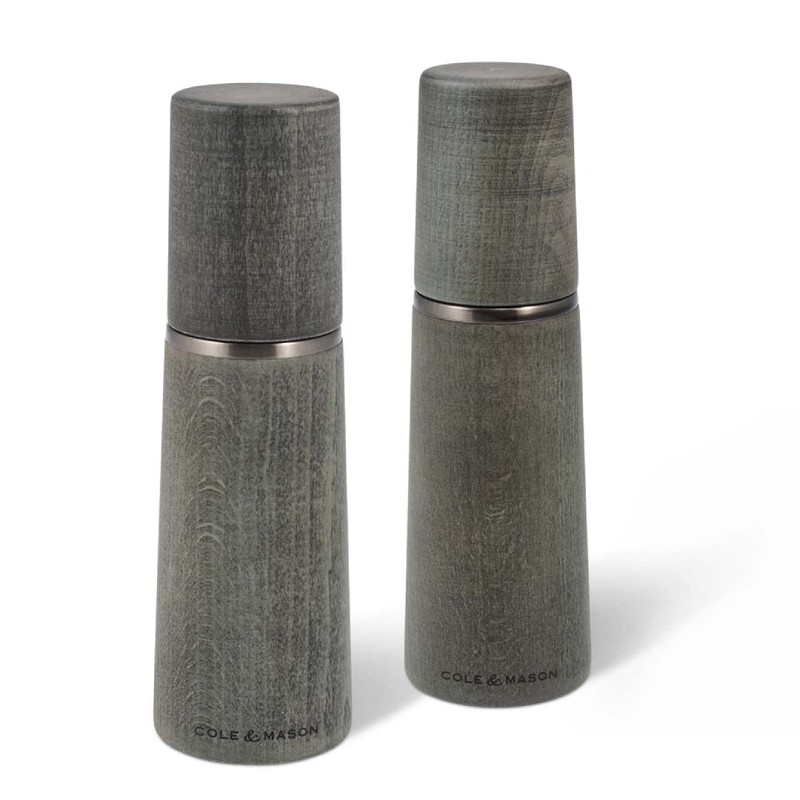Cole & Mason Marlow Wood Mill Set - Balanced Salt and Pepper Grinders - Refillable Spice Tools - Adjustable Salt and Peppercorn Grinder Settings - Dark Grey