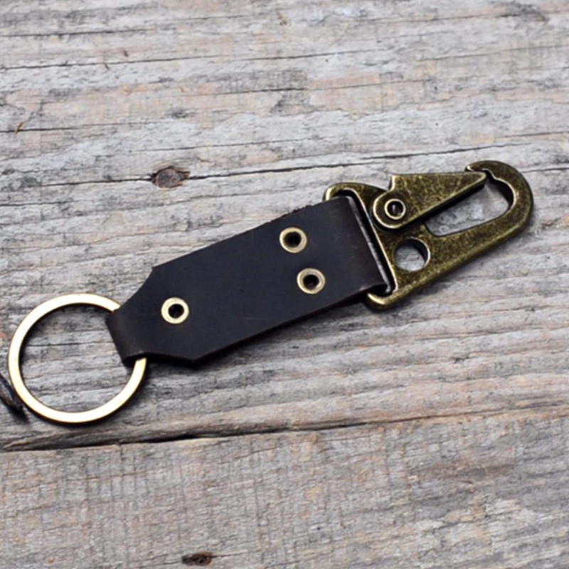 COLEAT Genuine Leather Key Ring Holder EDC Leather Belt Keychain , Clip Key Chain Fob for Men, Keyring Holder for Belt Darkbrown, Darkbrown, Medium