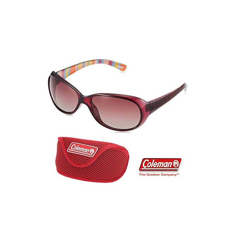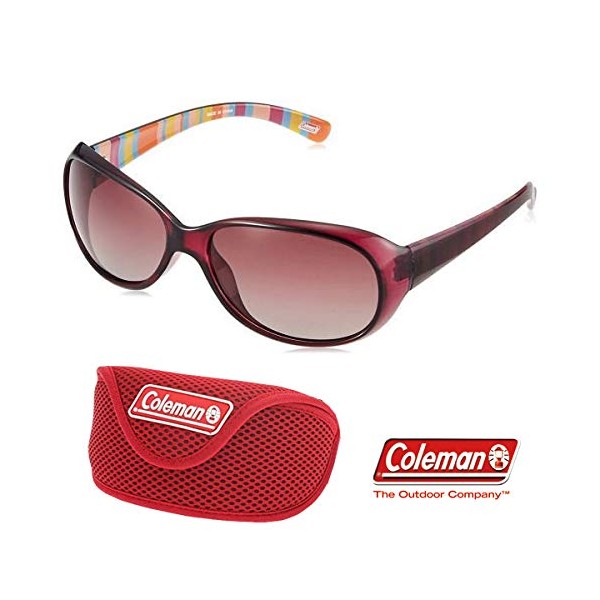 Coleman CLA01-3 Women's Polarized Sunglasses with Red Soft Case, Smoke Drive, Striped Pattern, Stylish, red