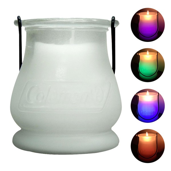 Coleman Color Changing LED Citronella Outdoor Scented Candle, 25+ Hours Burn Time, Festive Color Effects, Glass Holder with Metal Handle