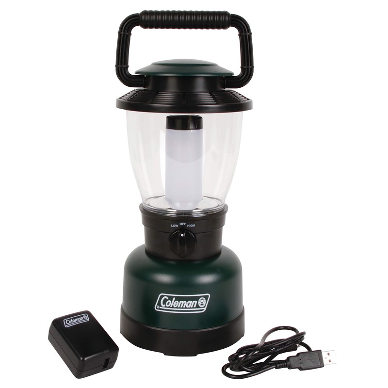 Coleman Rugged Rechargeable 400L LED Lantern, Water & Impact-Resistant Rechargeable Lantern with USB Charging Port, Carry Handle, & 2 Light Modes; Lifetime LEDs Never Need Replacing