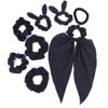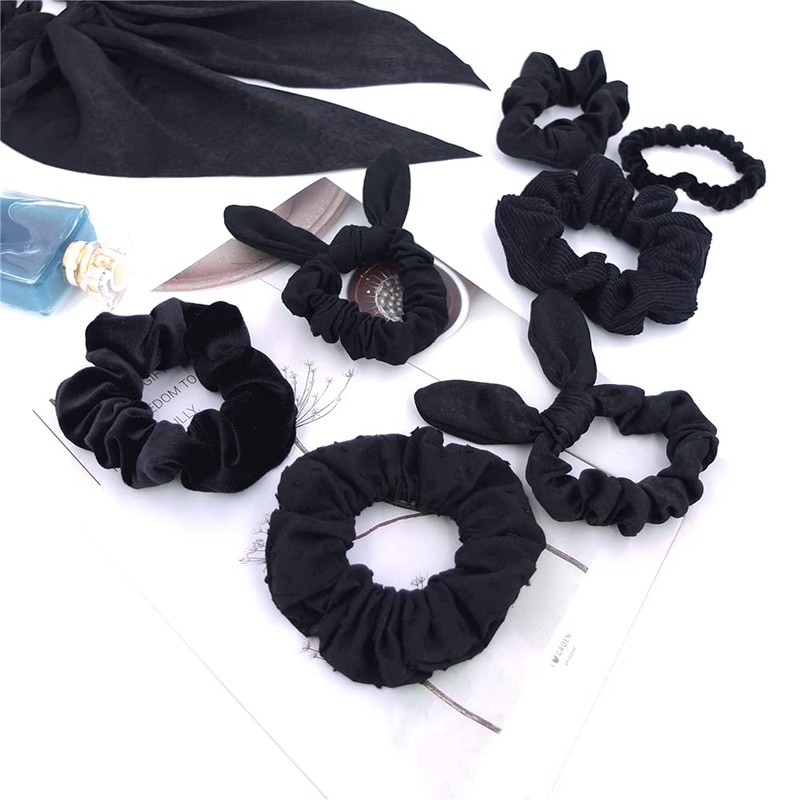 • Variedad de estilos: 8 diseños elegantes de color negro. Buena relación calidad-precio para diferentes estilos: algodón, seda de satén o terciopelo, estilo ancho o fino, incluso las colas largas bufanda de pelo. El surtido de hermosos coleteros incluye 3 coleteros anchos (terciopelo, pana y algodón suizo); 1 coletero de seda de satén normal, 1 coletero de terciopelo delgado, 2 coleteros de orejas de conejo (algodón, seda de atina S y seda), 1 coletero largo para bufanda.
