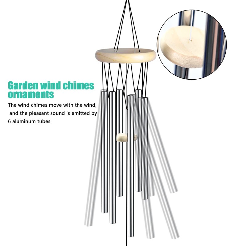 Colexy 70 cm Wind Chimes, 6 Aluminium Alloy Tubes, Wind Bell with Wooden Design, Chimes Metal Wind Chime for Indoor, Outdoor, Garden, Patio, Backyard, Home Decor, Gifts