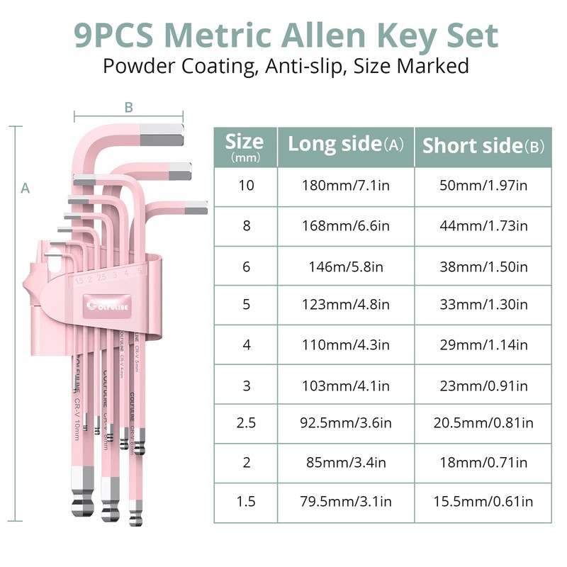 - 【PERFECT PINK TOOL GIFT】The Set of Pink Allen Keys Sets is Fit for Diy or Home Repair and Maintenance.It Can Easily Remove and Install Most Socket Cap Screws in Cars, Furniture, Bicycle, Appliance, Scooter, Instrument and Equipment, Meet All Your Repair Needs.For Fans of Pink - Everyday DIY isn’t a Chore!