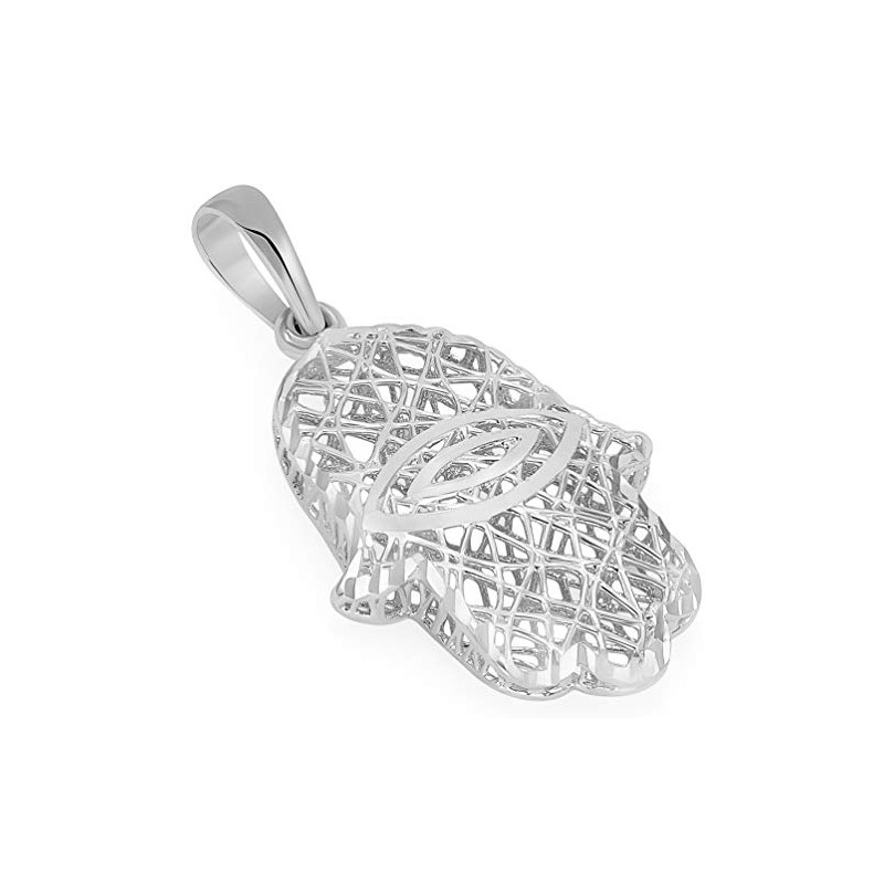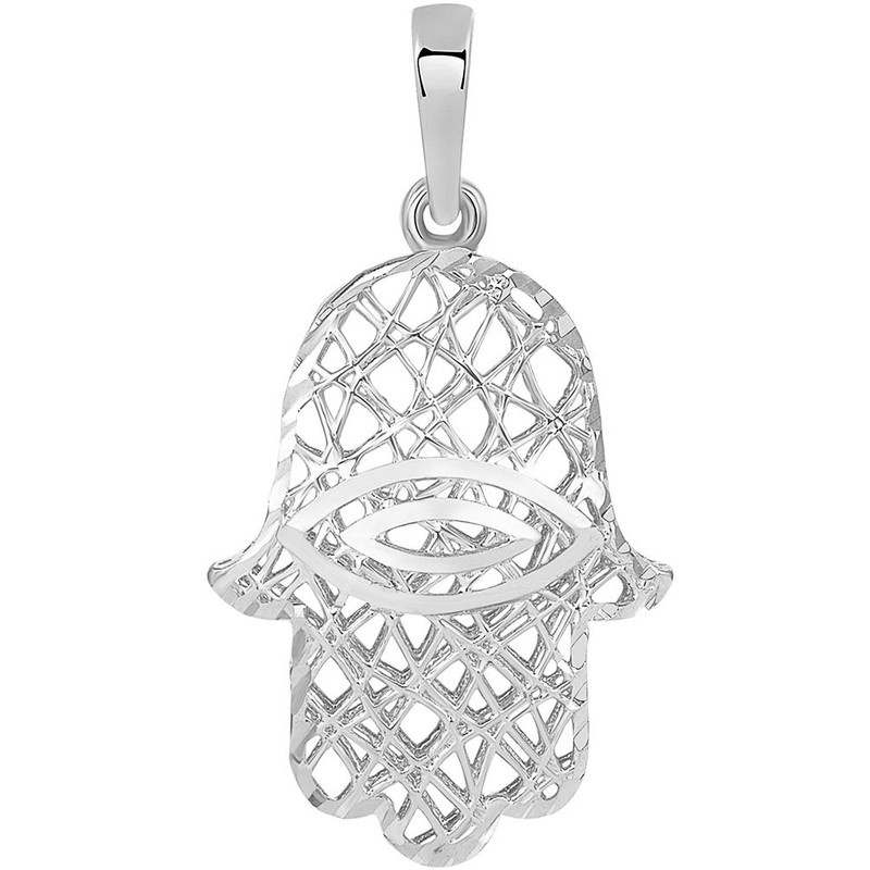 Colgante de oro blanco de 14 K con textura 3D de mano de Fátima con mal de ojo