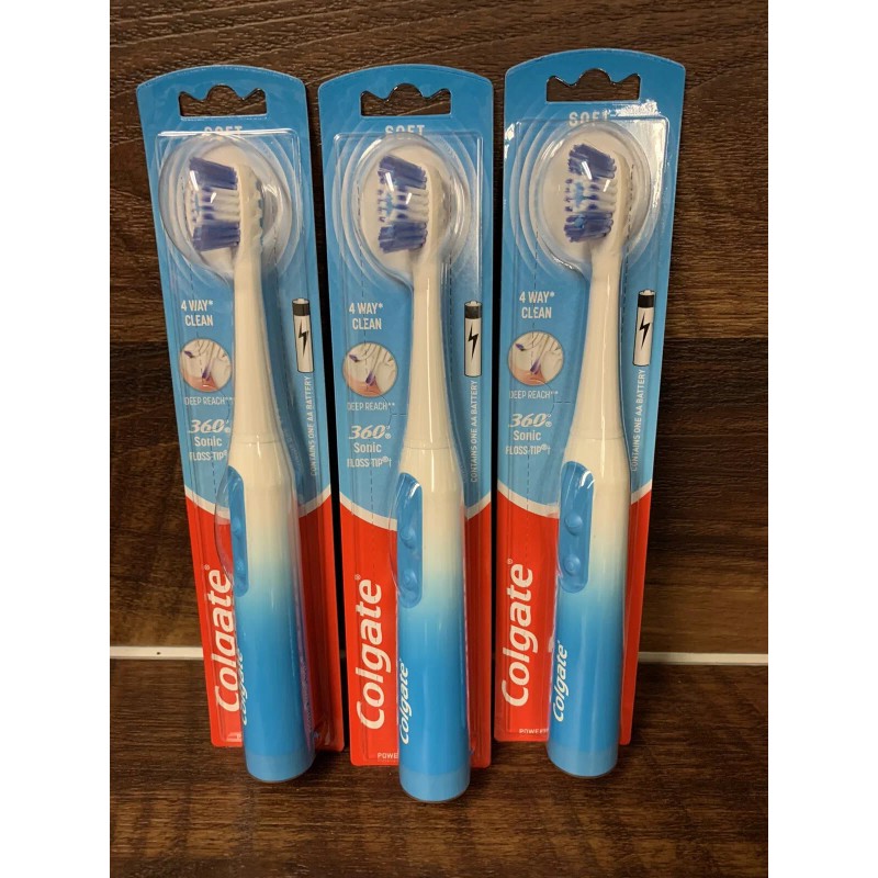 Colgate 3X Colgate 360 Sonic Floss-Tip Soft Battery Powered Electric Toothbrush
